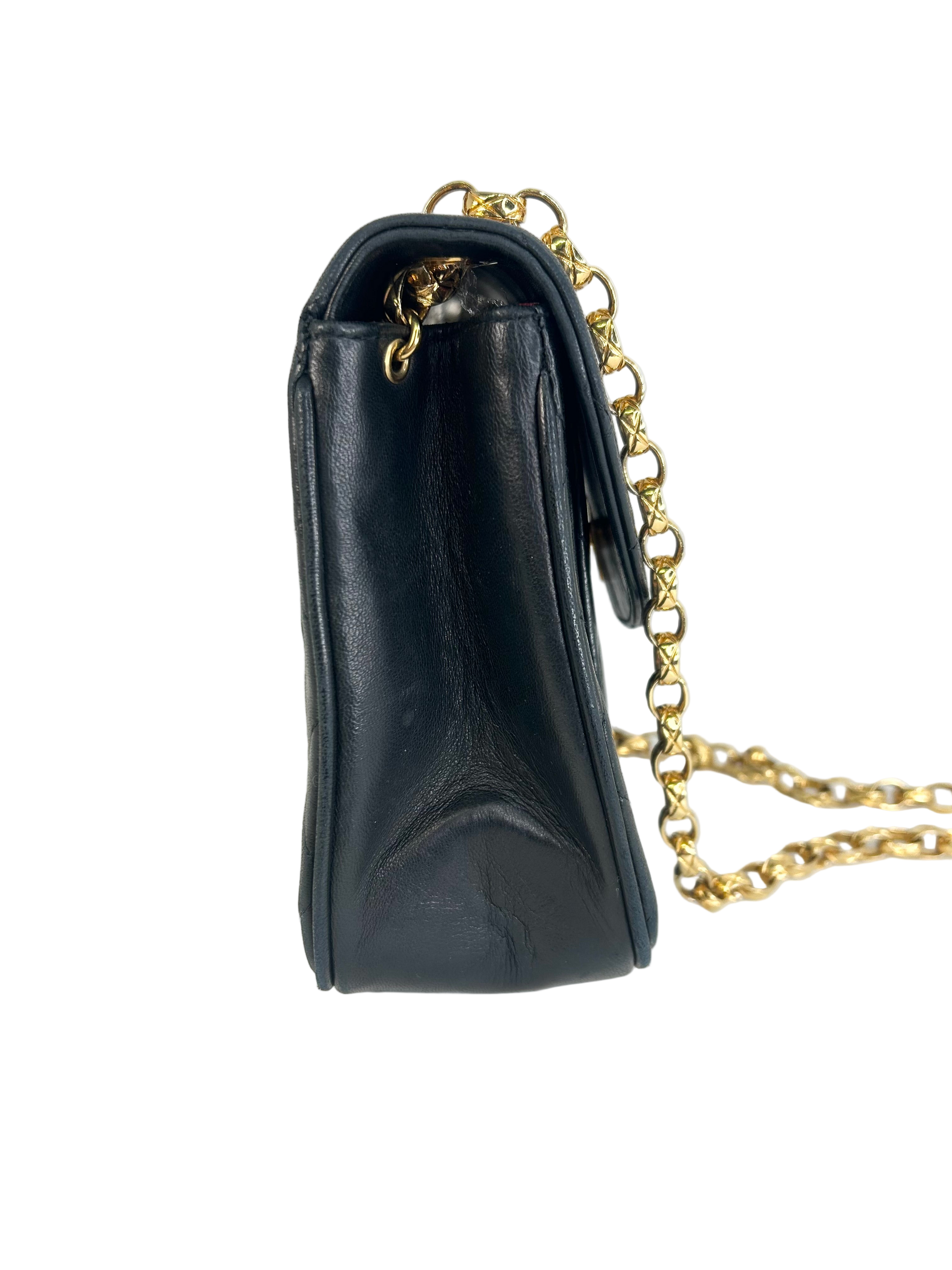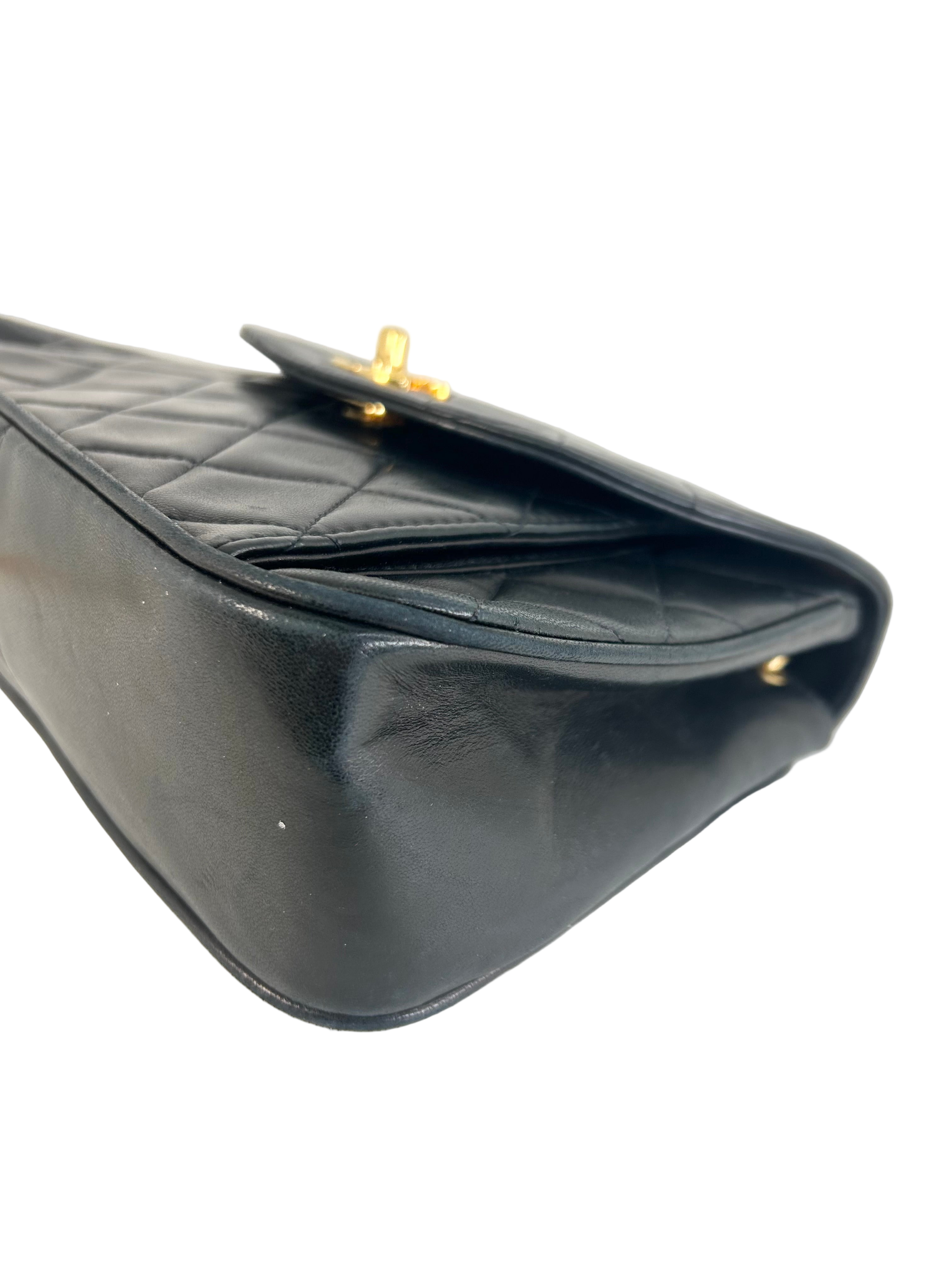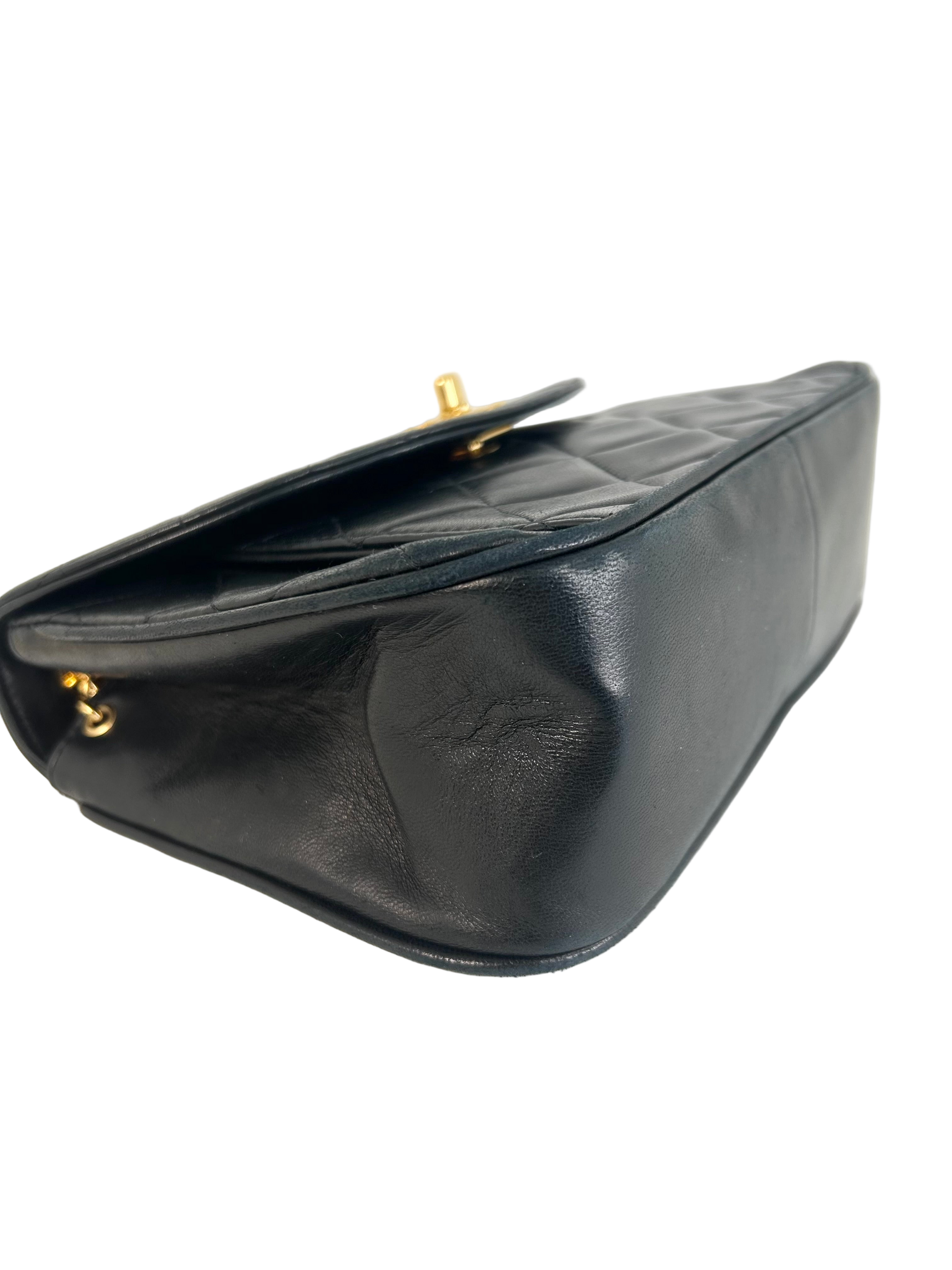 Die Tasche wurde in den späten 1980er-frühen 1990er Jahren hergestellt und ist für ihr Alter in sehr gutem Zustand mit leichten Gebrauchsspuren. Die Tasche zeichnet sich durch ihre Details auf der Hardware aus, welche 24k vergoldet ist.