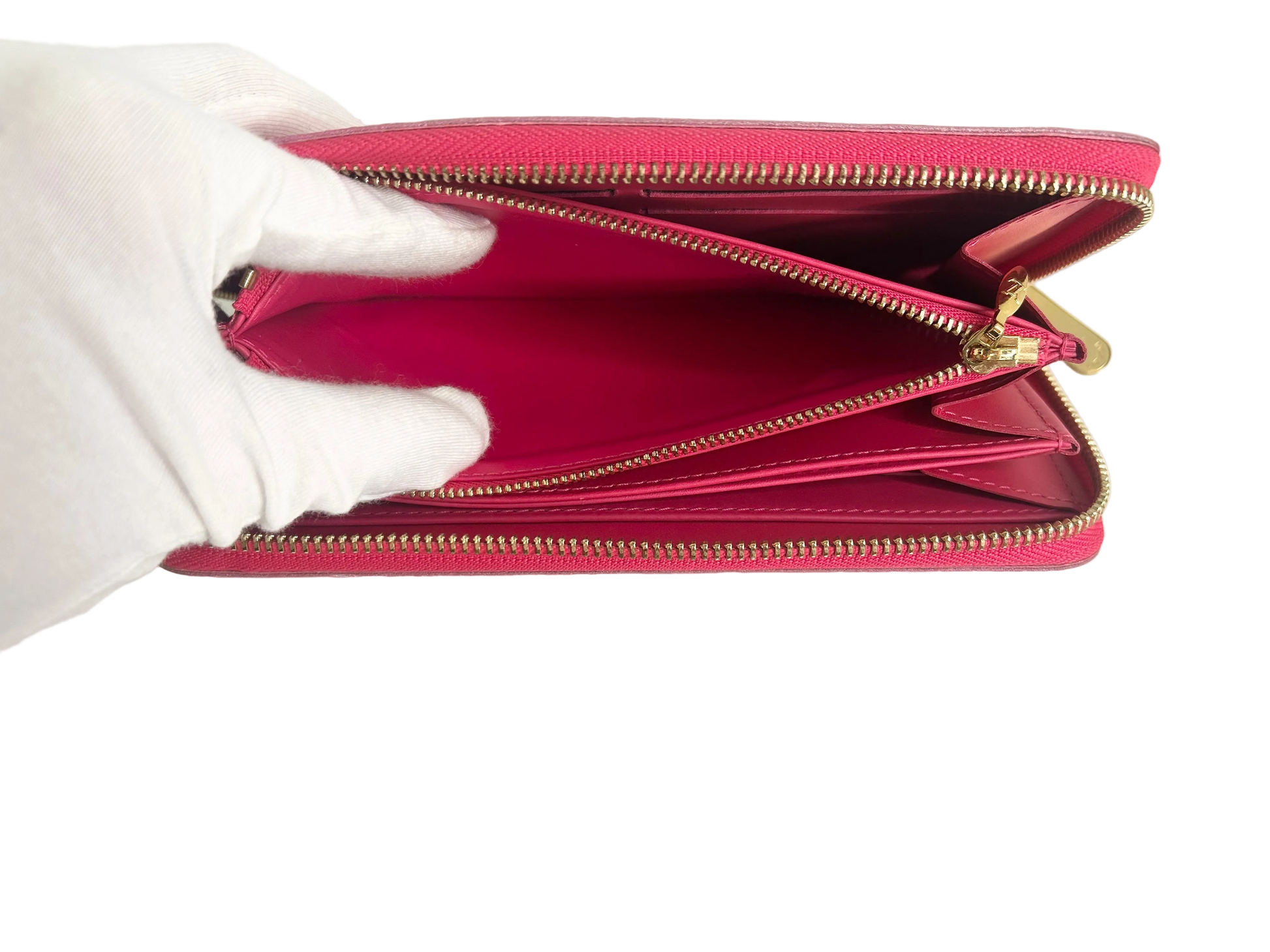 Das Portemonnaie ist in sehr gutem, gebrauchtem Zustand. Auf der Vorder- und Rückseite sind Verfärbungen sichtbar, bitte aufmerksam die Fotos ansehen. Auch die Ecken weisen leichte Abnutzungen auf. Innen ist es in tadellosem Zustand.